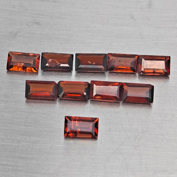 Natural Orangish Red Garnet 3.34 Ct. 10 Pcs Baguette Shape 5.2 x 3.2 Mm Gemstone From Tanzania