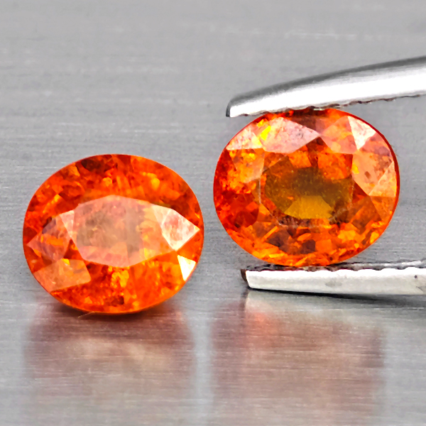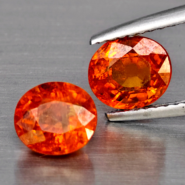 Natural Orangish Red Spessartine Garnet 3.15 Ct. 2Pcs Oval Shape 6.9 x 6.2 Mm Gemstones From Namibia