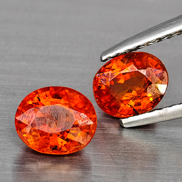 Natural Orangish Red Spessartine Garnet 2.57 Ct. 2Pcs Oval Shape 6.6 x 5.6 Mm Gemstones From Namibia