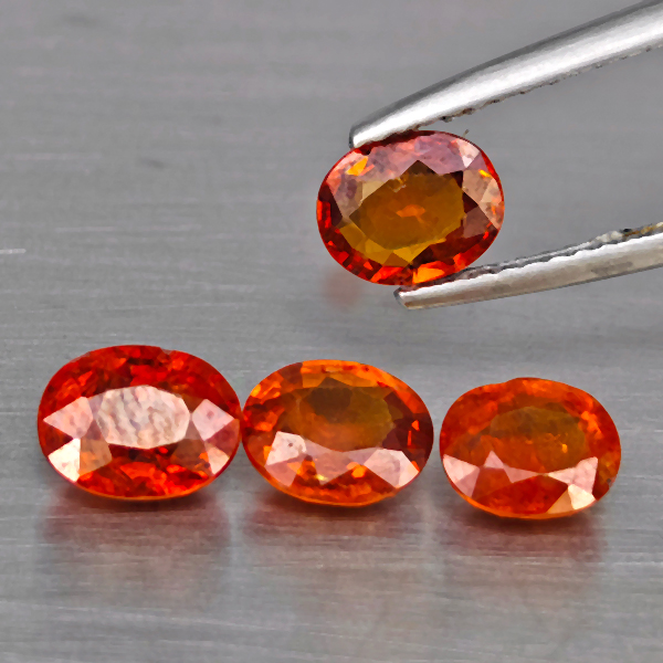 Natural Orangish Red Spessartine Garnet 4.04 Ct. 4 Pcs Oval Shape Gemstones From Namibia