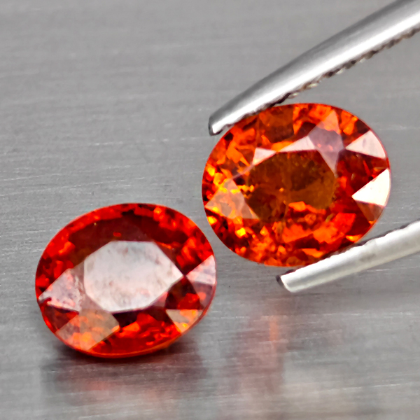 Natural Orangish Red Spessartine Garnet 2.91 Ct. 2Pcs Oval Shape 6.9 x 6.1 Mm Gemstones From Namibia