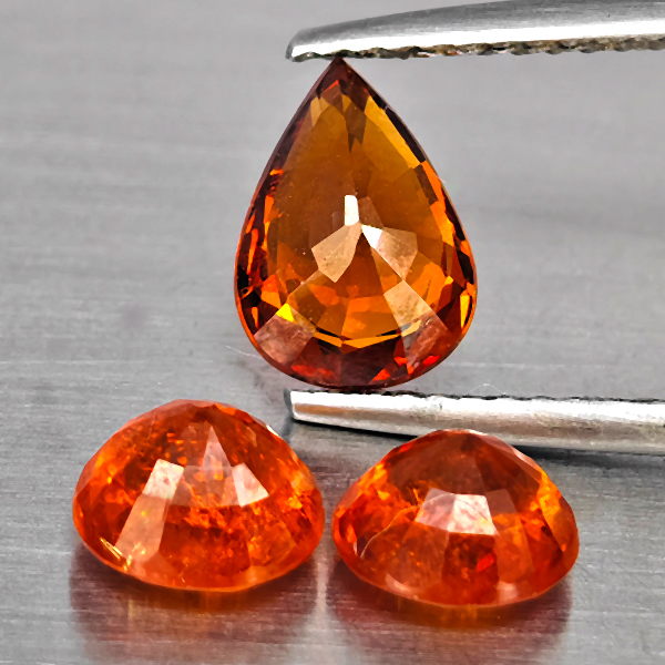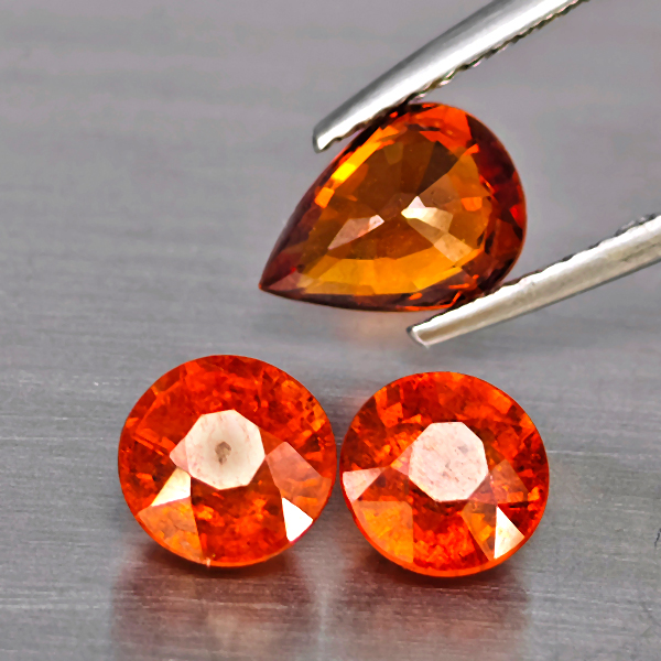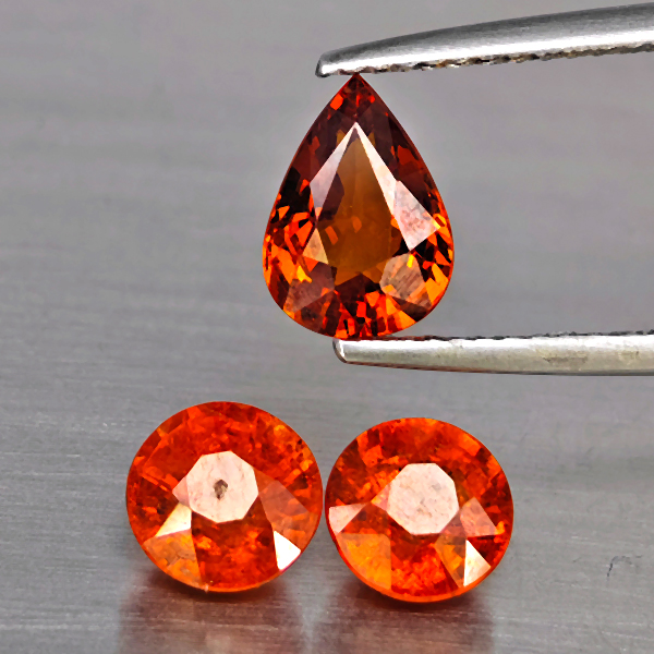 Natural Orangish Red Spessartine Garnet 3.62 Ct. 3 Pcs Mixed Shape Gemstones From Namibia