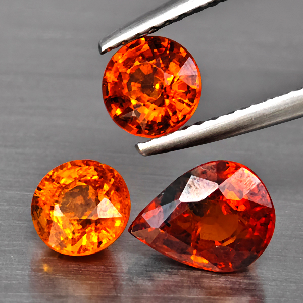 Natural Orangish Red Spessartine Garnet 3.33 Ct. 3 Pcs Mixed Shape Gemstones From Namibia