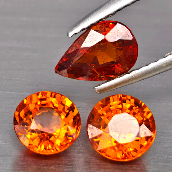 Natural Orangish Red Spessartine Garnet 3.68 Ct. 3 Pcs Mixed Shape Gemstones From Namibia