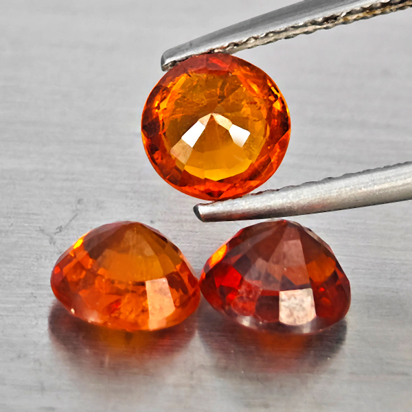Natural Orangish Red Spessartine Garnet 4.10 Ct. 3Pcs Round Shape 6.4 Mm Gemstones From Namibia