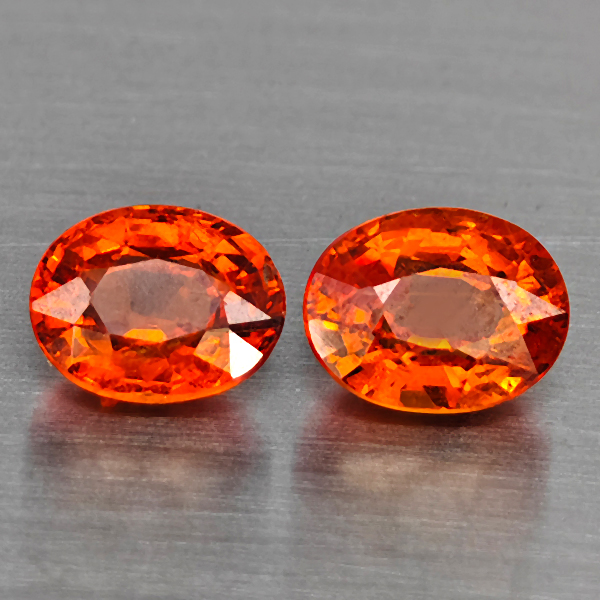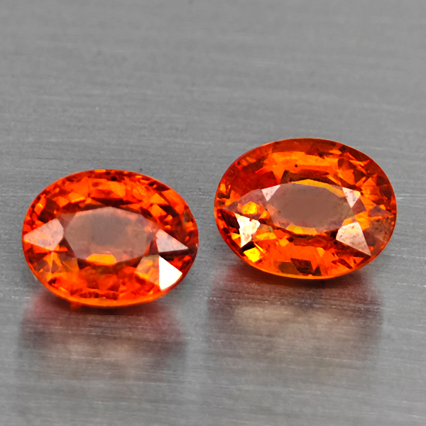 Natural Orangish Red Spessartine Garnet 2.49 Ct. 2Pcs Oval Shape 6.5 x 5.4 Mm Gemstones From Namibia