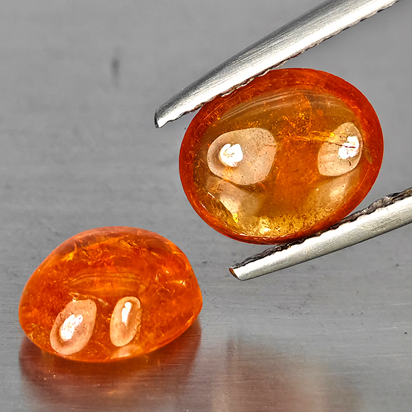 Natural Orangish Red Spessartine Garnet 8.91 Ct. 2 Pcs Oval Cabochon Shape Gemstones From Namibia