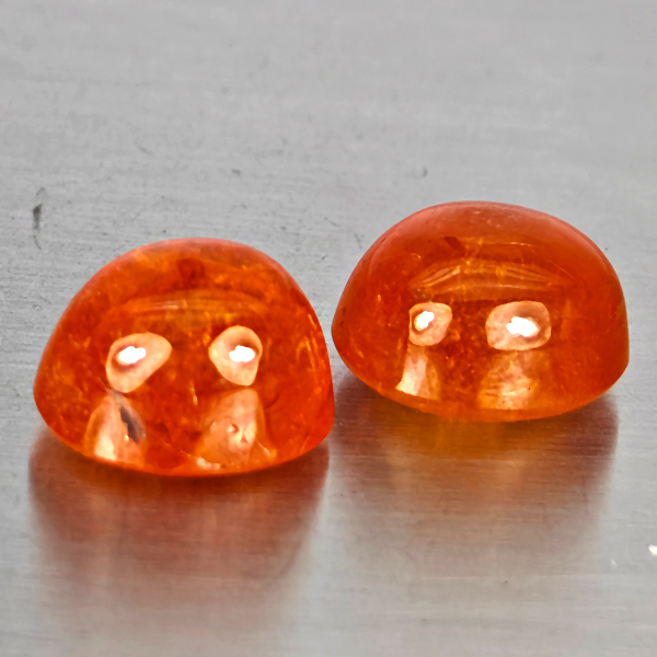Natural Orangish Red Spessartine Garnet 9.25 Ct. 2 Pcs Oval Cabochon Shape Gemstones From Namibia