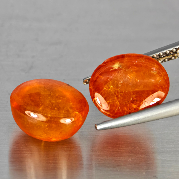 Natural Orangish Red Spessartine Garnet 11.80 Ct. 2 Pcs Oval Cabochon Shape Gemstones From Namibia
