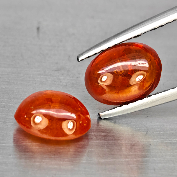 Natural Orangish Red Spessartine Garnet 5.80 Ct. 2 Pcs Oval Cabochon Shape Gemstones From Namibia