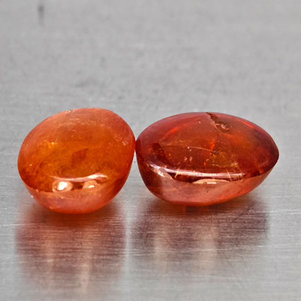 Natural Orangish Red Spessartine Garnet 10.54 Ct. 2 Pcs Oval Cabochon Shape Gemstones From Namibia