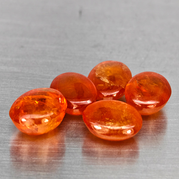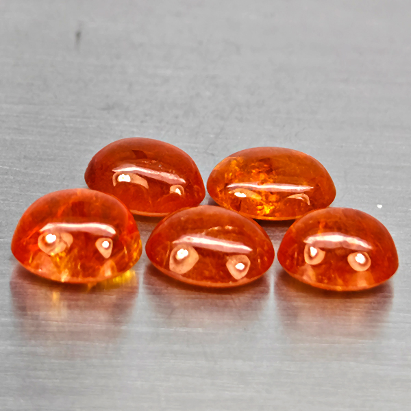 Natural Orangish Red Spessartine Garnet 11.30 Ct. 5 Pcs Oval Cabochon Shape Gemstones From Namibia