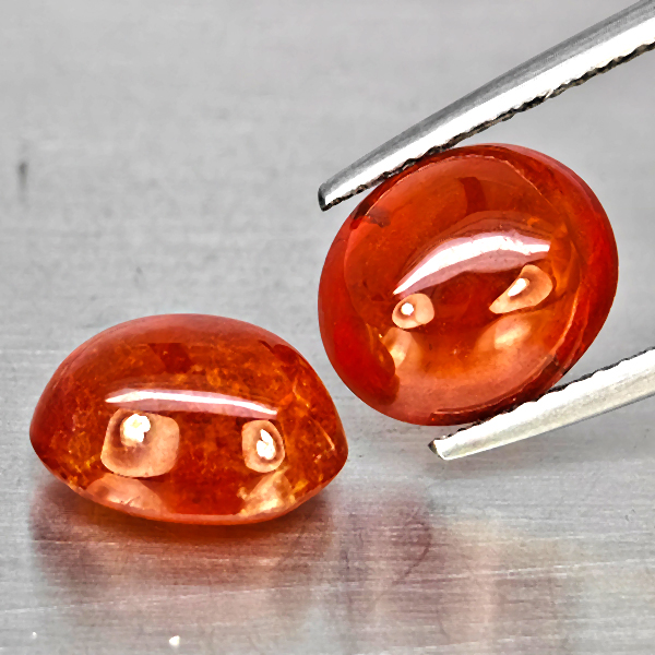 Natural Orangish Red Spessartine Garnet 8.94 Ct. 2 Pcs Oval Cabochon Shape Gemstones From Namibia