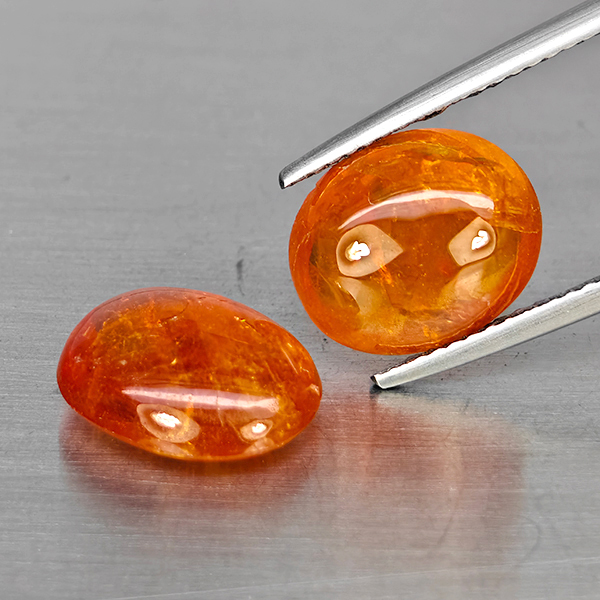 Natural Orangish Red Spessartine Garnet 12.47 Ct. 2 Pcs Oval Cabochon Shape Gemstones From Namibia