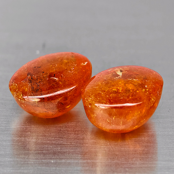 Natural Orangish Red Spessartine Garnet 21.92 Ct. 2 Pcs Oval Cabochon Shape Gemstones From Namibia
