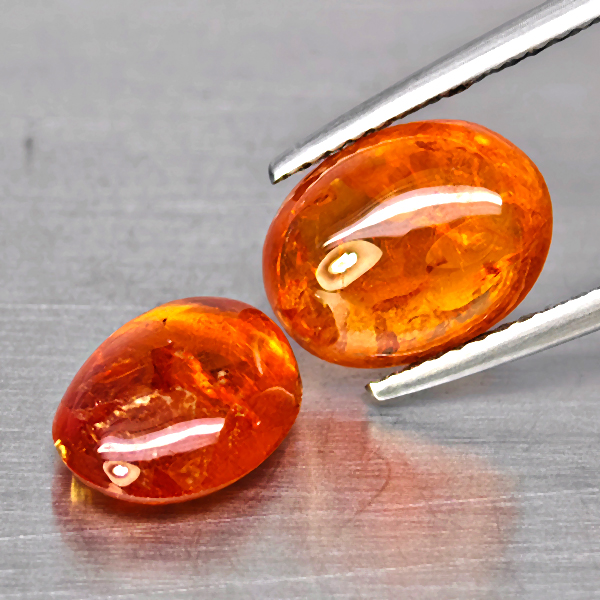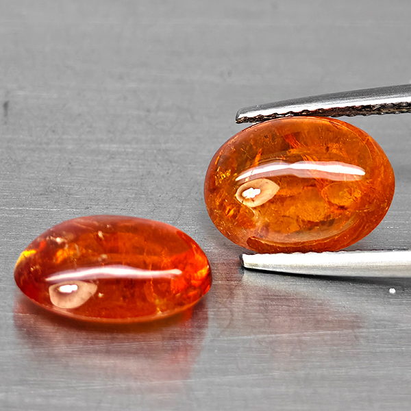 Natural Orangish Red Spessartine Garnet 8.91 Ct. 2 Pcs Oval Cabochon Shape Gemstones From Namibia