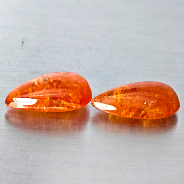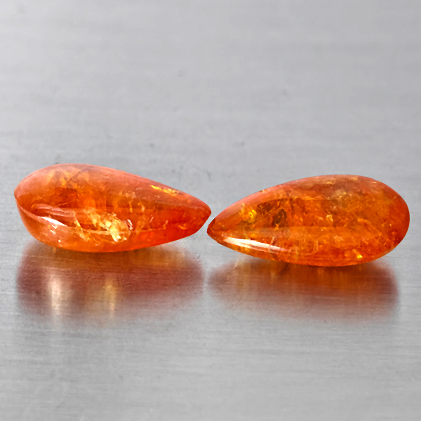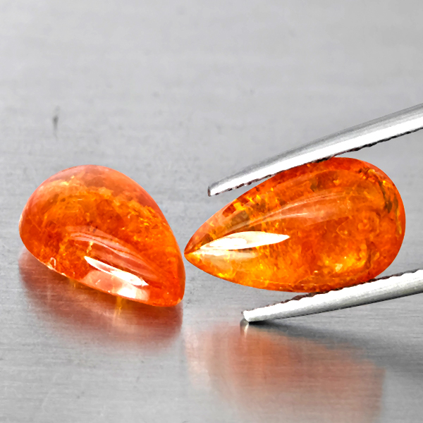 Natural Orangish Red Spessartine Garnet 10.68 Ct. 2 Pcs Pear Cabochon Shape Gemstones From Namibia