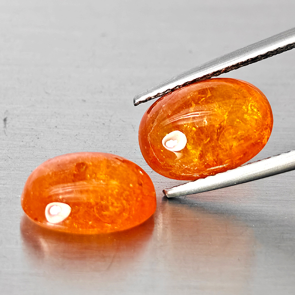 Natural Orangish Red Spessartine Garnet 10.54 Ct. 2 Pcs Oval Cabochon Shape Gemstones From Namibia