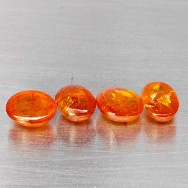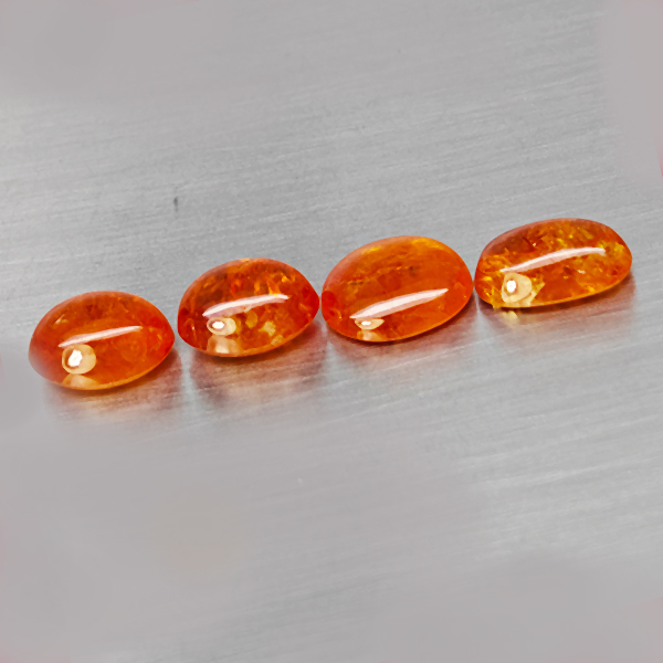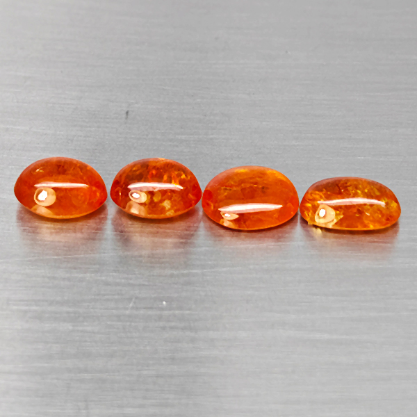 Natural Orangish Red Spessartine Garnet 15.32 Ct. 4 Pcs Oval Cabochon Shape Gemstones From Namibia