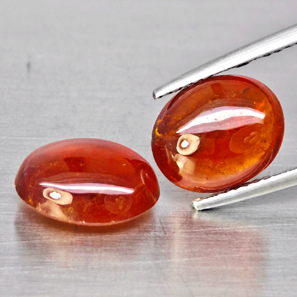 Natural Orangish Red Spessartine Garnet 14.91 Ct. 2 Pcs Oval Cabochon Shape Gemstones From Namibia