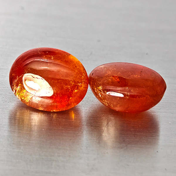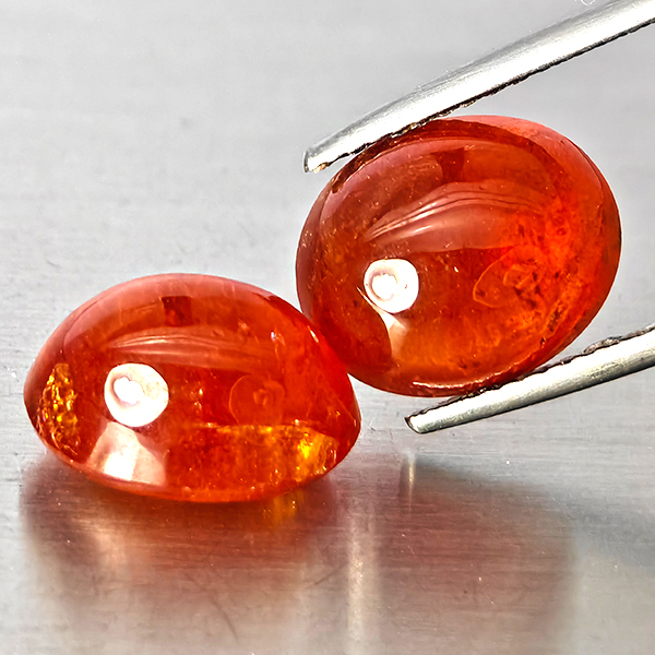 Natural Orangish Red Spessartine Garnet 14.91 Ct. 2 Pcs Oval Cabochon Shape Gemstones From Namibia