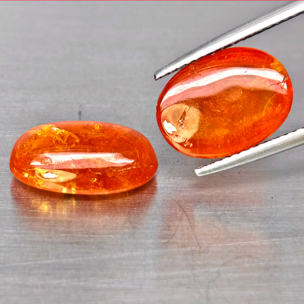 Natural Orangish Red Spessartine Garnet 8.12 Ct. 2 Pcs Oval Cabochon Shape Gemstones From Namibia