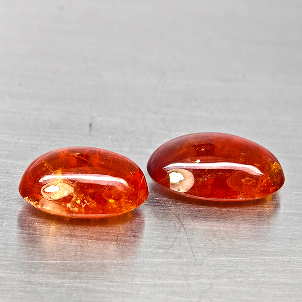 Natural Orangish Red Spessartine Garnet 14.91 Ct. 2 Pcs Oval Cabochon Shape Gemstones From Namibia