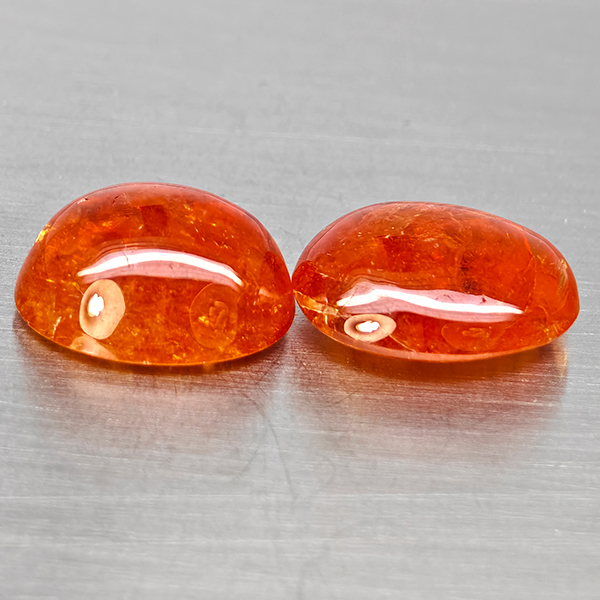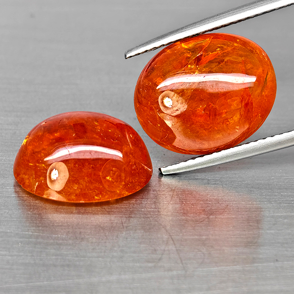 Natural Orangish Red Spessartine Garnet 14.39 Ct. 2 Pcs Oval Cabochon Shape Gemstones From Namibia