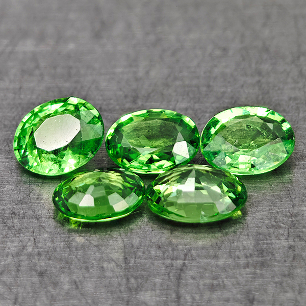Natural Green Tsavorite Garnet 1.21 Ct. 5 Pcs. Oval Shape 4.7 x 3.5 Mm Gemstones