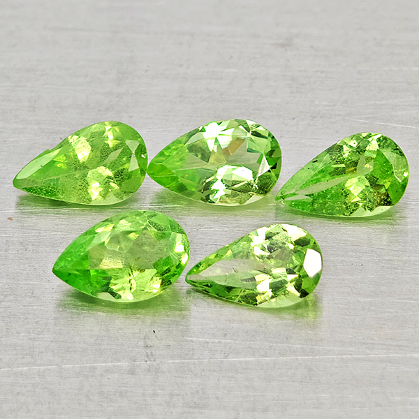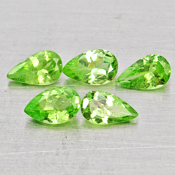 Natural Green Tsavorite Garnet 1.01 Ct. 5 Pcs Pear Shape Gemstones From Tanzania
