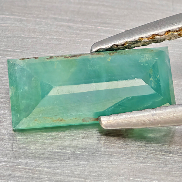 Natural Green Blueish Grandidierite 1.26 Ct. Baguette Shape 10 x 4.4 Mm Gemstone from Madagascar