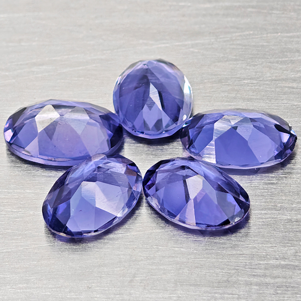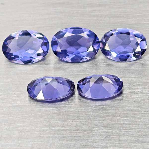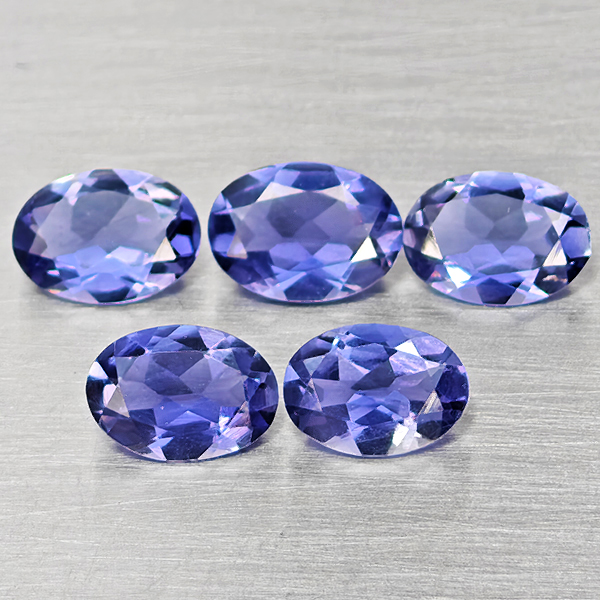 Natural Violetish Blue Iolite 2.68 Ct. 5 Pcs Oval Shape 7.3 x 5.2 Mm Gemstones From Madagascar