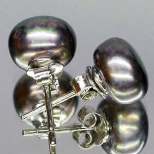 7.25 Ct. 7.9 Mm. Round Cab Natural Pearl Silver Earring