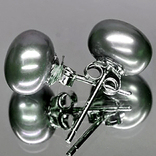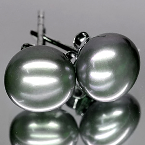 7.91 Ct. 8.3 Mm. Round Cab Natural Pearl Silver Earring