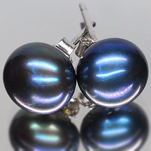 7.71 Ct. 8.2 Mm. Round Cab Natural Pearl Silver Earring