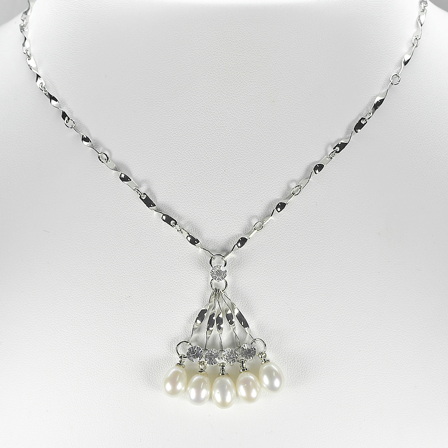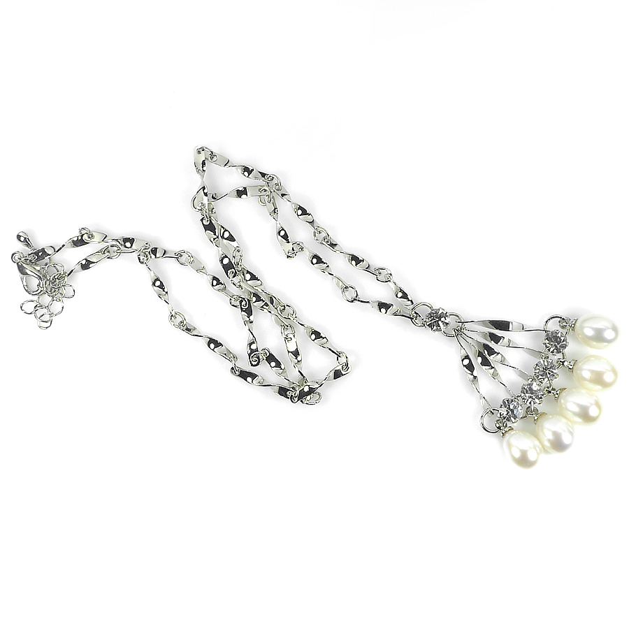 8.80 G. Natural White Pearl Nickel Necklace Unheated