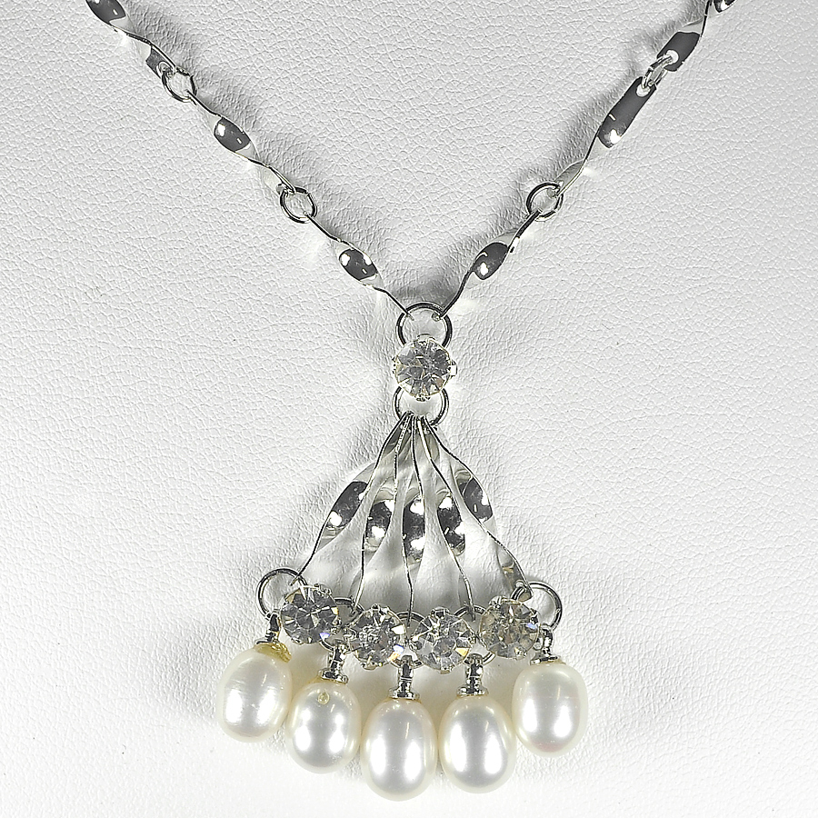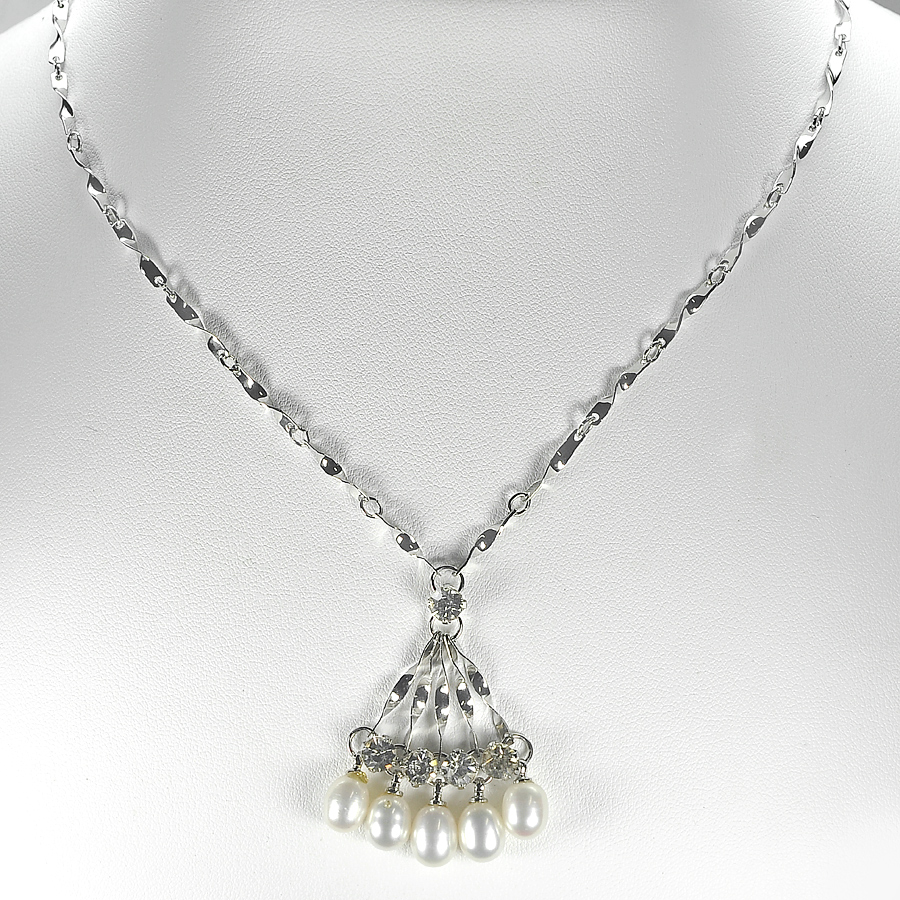 8.69 G. Natural White Pearl Nickel Necklace Unheated