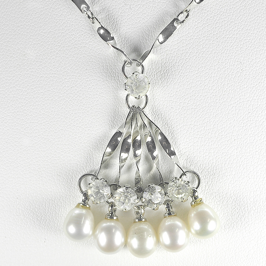8.48 G. Natural White Pearl Nickel Necklace Unheated