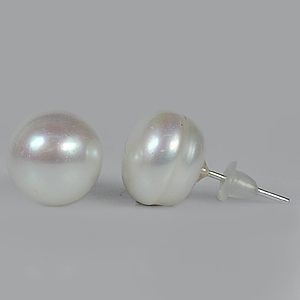 10.87 Ct. Mm Amazing Natural White Pearl Silver Earring