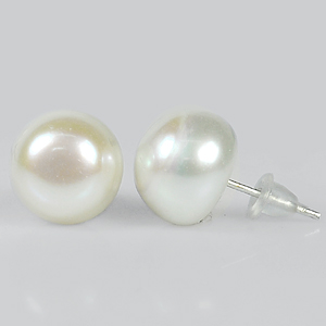 13.37 Ct. Charming Natural White Pearl Silver Earrings