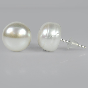 10.47 Ct. Finely Cut Natural White Pearl Silver Earring