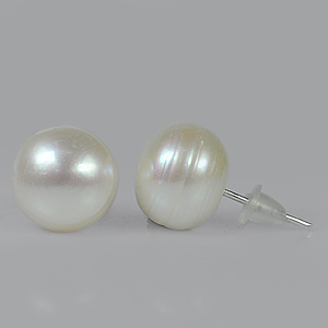 13.56 Ct. Alluring Natural White Pearl Silver Earring