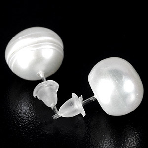 14.24 Ct. Natural White Color Pearl Silver Earrings