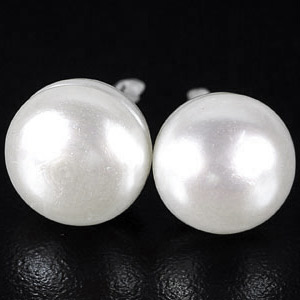 13.94 Ct. Round Natural White Pearl Silver Earrings