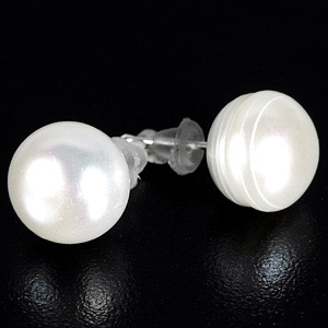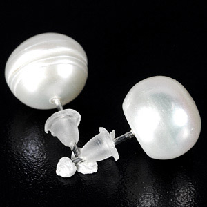 14.59 Ct. Natural White Color Pearl Silver Earrings