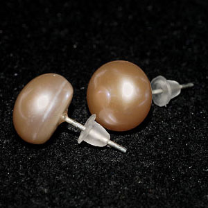 10.50 Ct. Nice Natural Orange Pink Pearl Silver Earring