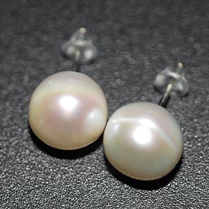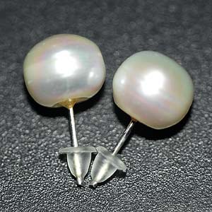 13.84 Ct Attractive Natural White Pearl Silver Earrings