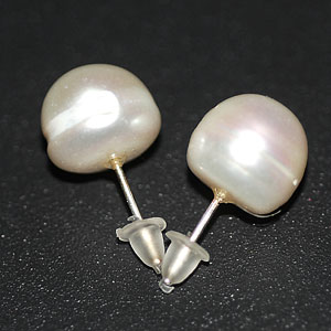 14.77 Ct Attractive Natural White Pearl Silver Earrings