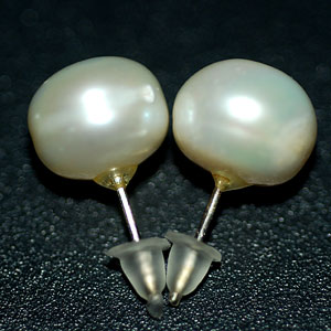 14.08 Ct. Alluring Natural White Pearl Silver Earrings
