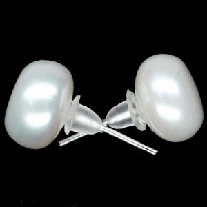 13.88 Ct Attractive Natural White Pearl Silver Earrings